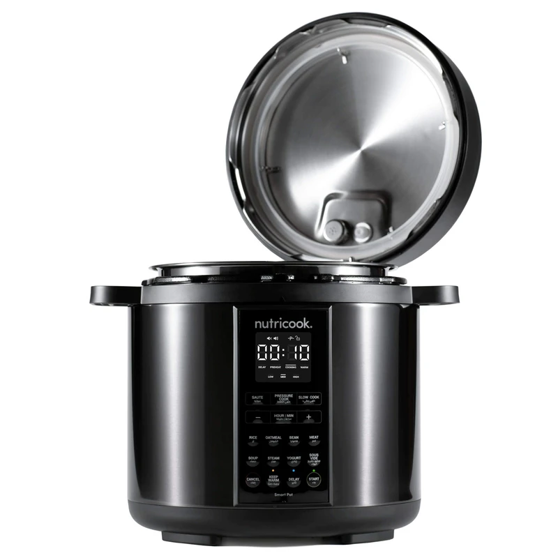 | سایر توضیحات | برنامه ها ( pressure cooker, sauté pot, slow cooker, rice cooker, steamer, sous vide pot, soup maker, yogurt maker, and food warmer ) ( زودپز ، تفت دهی یا سرخ کردن ، آرام پز ، پلوپز ، بخارپز ، کیسهپزی ، سوپ ساز ، ماست ساز و گرم نگهدارنده غذا ) دستگاه طراحی و مهندسی نوتریبولت در کالیفرنیا اسمبل در چین Superfast زودپز هوشمند نوتریکوک 70% درصد سریعتر از تهیه آن به روش معمول تهیه می شوند دارای فناوری Smart Lid درب هوشمند دارای قابلیت DELAY شروع با تاخیر قابلمه پخت و پز داخلی نوتریکوک از استیل ضد زنگ با کیفیت برتر 304 (18/8) ساخته شده است که سلامت و کیفیت غذا را تضمین می کند |