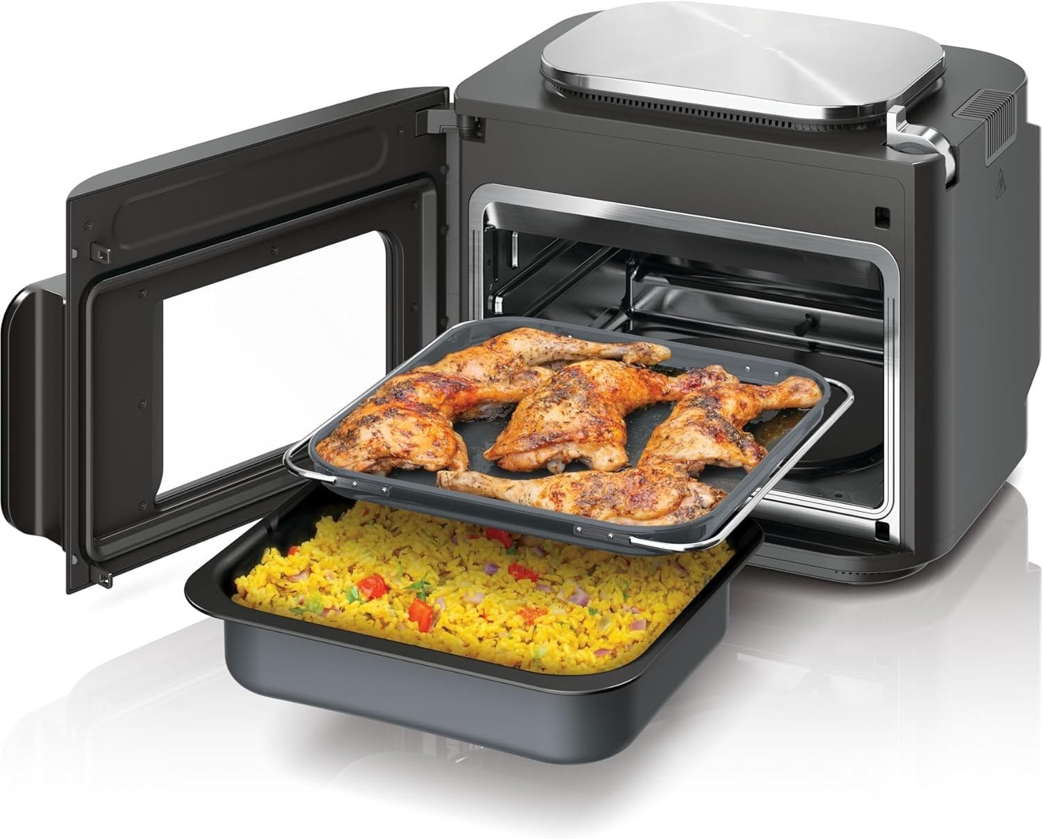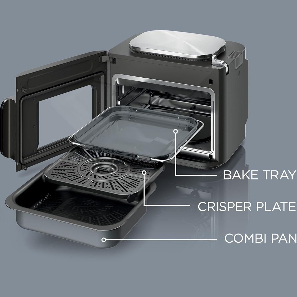 | سایر اقلام همراه محصول | تابه ترکیبی، سینی پخت، سینی ترد، و کتاب دستور پخت با 20 آشپز ایجاد شده دستور العمل ها و نمودارهای آشپزی |